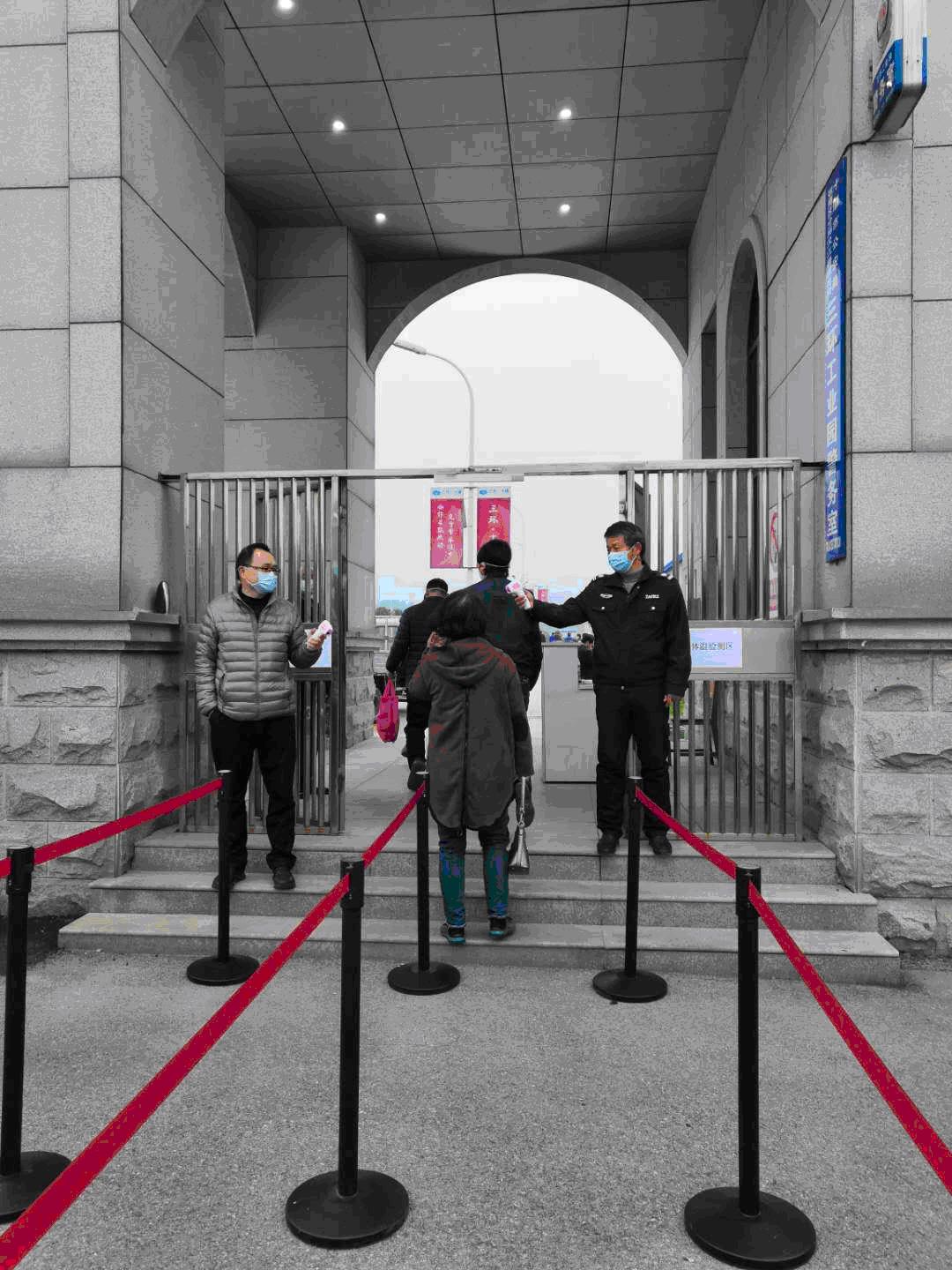 在廠區門口,員工依次接受紅外線監測儀進行體溫檢測,有序進入廠區,到達工作崗位。對進入廠區車輛一律進行消殺,外來人員、車輛按規定進行登記和測量體溫,并全程佩戴口罩,保持1.5米以上的安全距離。
